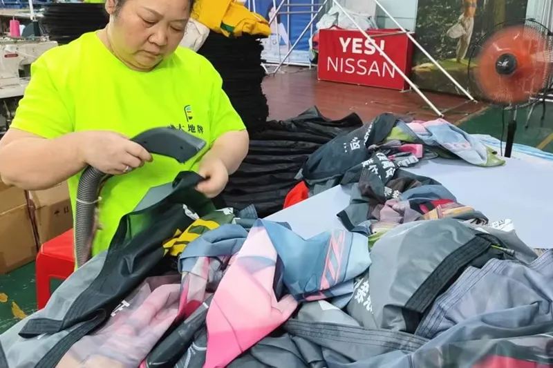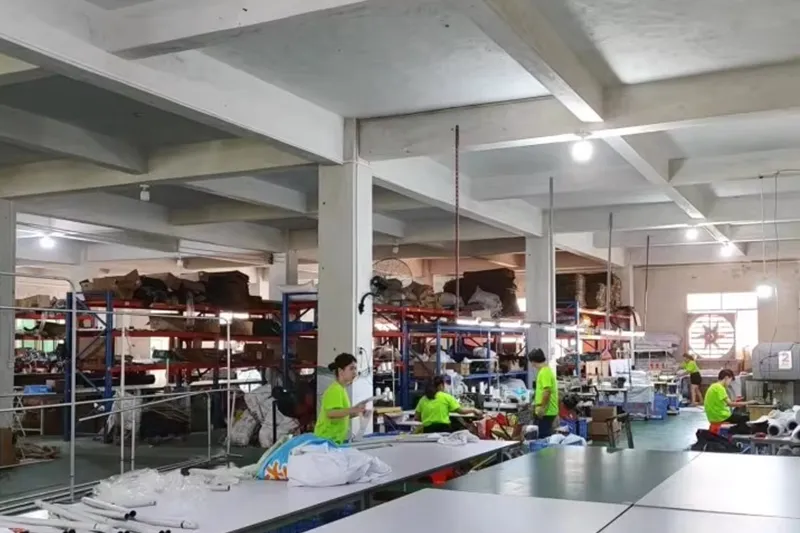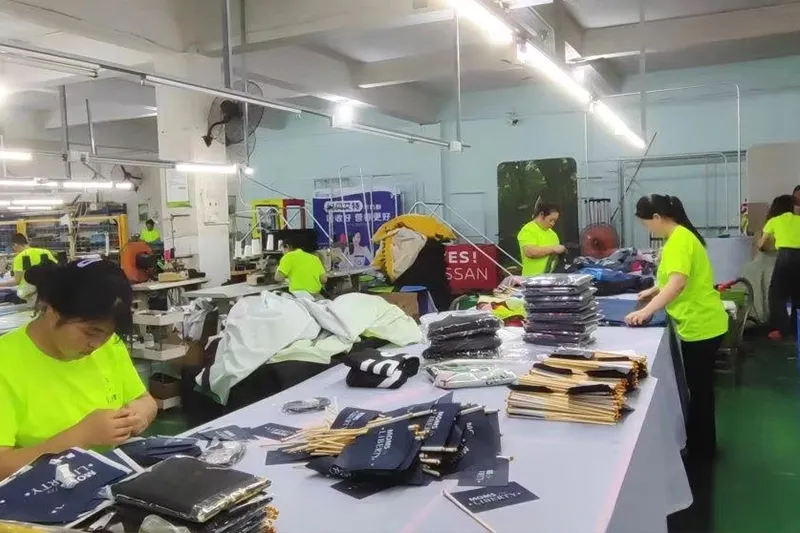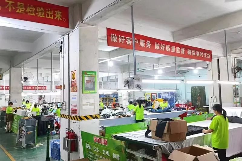 Werkstatt 10, 800 m², 130+ Mitarbeiter, 20+ Designerteam, 5.000.000 US-Dollar Anlagevermögen, 50+ Sätze Metallverarbeitungsmaschinen, 100+ Sätze Stoff- und Druckmaschinen, 1000.000+ Sätze jährliche Exportmenge, 90 % Kundendoppelbestellungen.